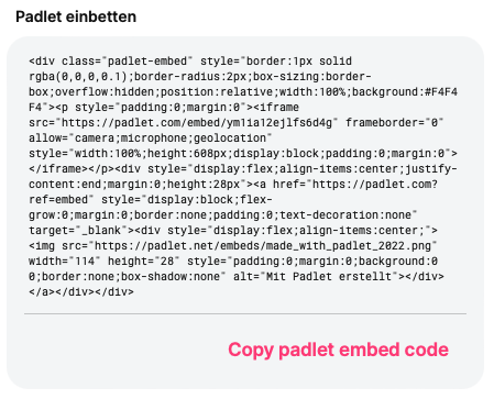 • Mit EMBED-Code eingefügtes Padlet: