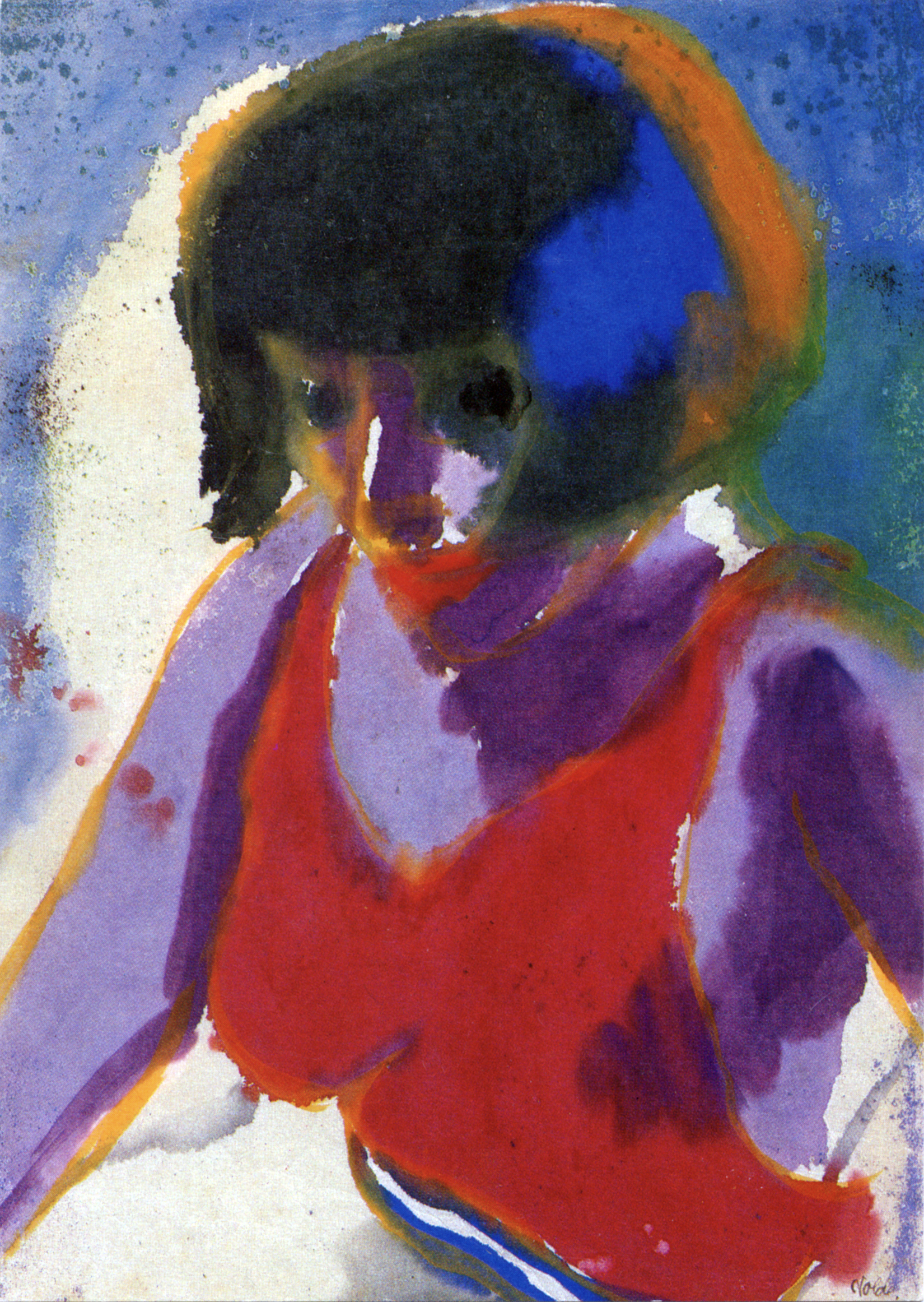 Aquarell mit Wachsfarben übergangen, 50 x 60 cmAmorphe Formen
