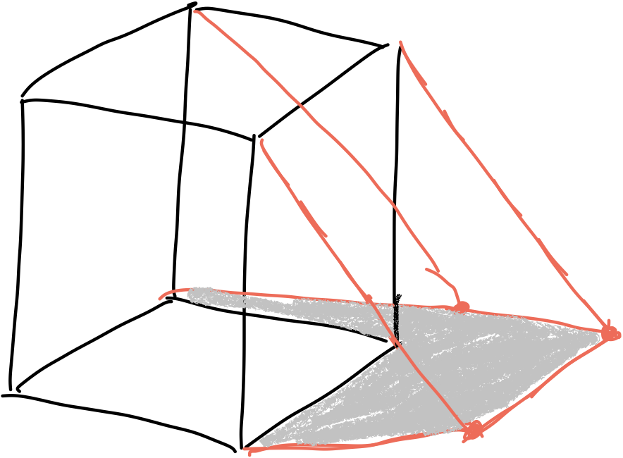 • Bestimme die Tiefe und Breite des Quaders durch senkrechte Linien