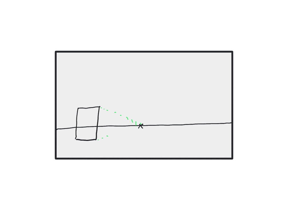 • Ziehe von den Eckpunkten des Rechtecks Hilfslinien zum Fluchtpunkt