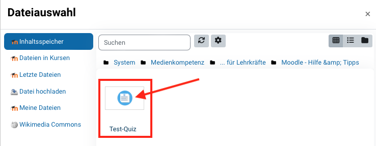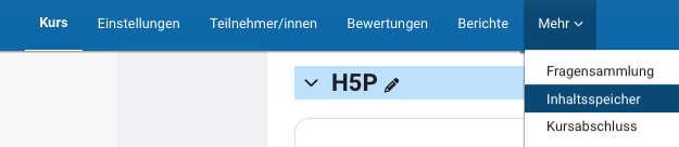 Dann wählt man das bereits im Inhaltsspeicher liegende H5P-Modul aus: