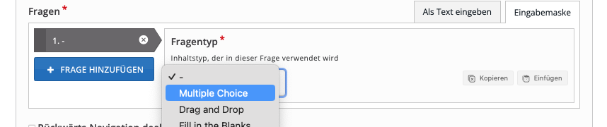 Die erste Frage soll vom Inhaltstyp "Multiple Choice" sein.