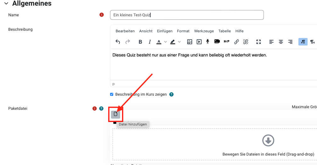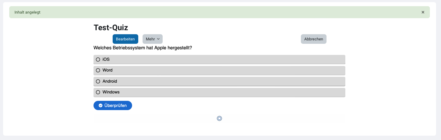 Mit einem Klick auf "Speichern" - ganz unten - wird das Quiz im Inhaltsspeicher gesichert.