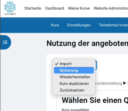 Grundsätzlich ist es sinnvoll vorher eine Sicherung des eigenen Kurses (Backup) zu erstellen.